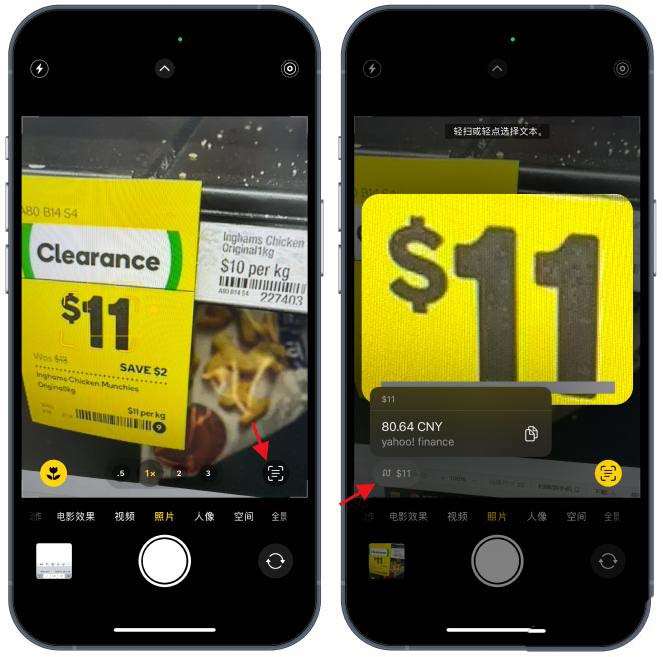 在iOS16以及更新版本中,苹果为实时文本功能加入了一个新的技巧:即时转换货币。我们可以也就是可以使用相机实时换算汇率。