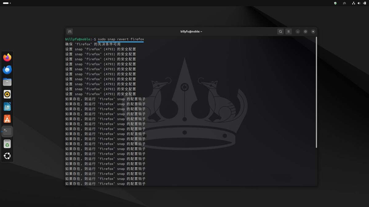 当某个 Snap 软件包遇到问题时,可以回滚到之前的版本: