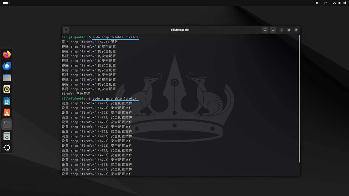 你可以在不卸载和重装的情况下,临时停用或启用 Snap 软件包: