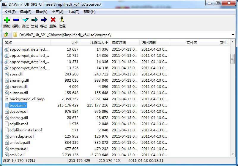 3、再选择 boot.wim 右键,选择使用 7-zip 打开压缩包。