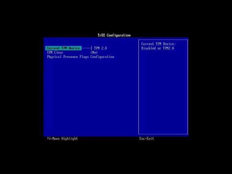 注:该选项可能具有不同的名称,例如安全设备(Security Device),安全设备支持(Security Device Support)或 TPM 状态(TPM State)。