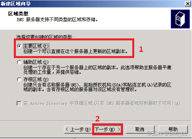 步骤3 选择“主要区域”单选按钮,然后单击“下一步”。