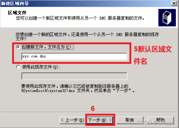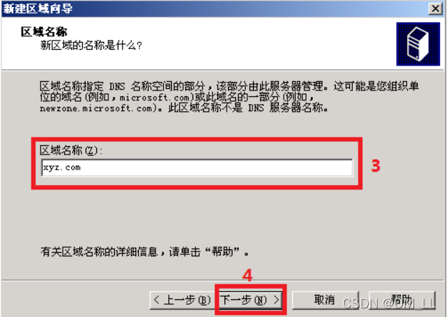 步骤4 使用默认的区域文件名“xyz.com.dns”。