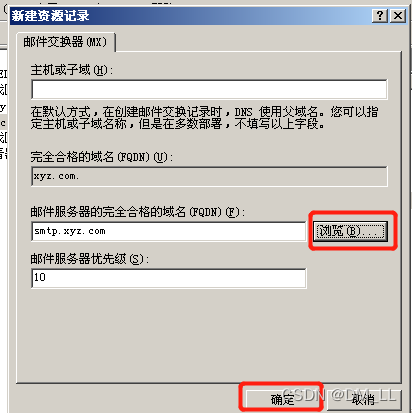 步骤3 选择xyz.com区域并选择“新建邮件交换器(MX)”。