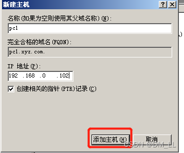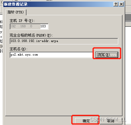 步骤2 输入“主机IP号”和“完全合格的域名(FQDN)”。也可以单击“浏览”按钮到正向区域内选择主机。