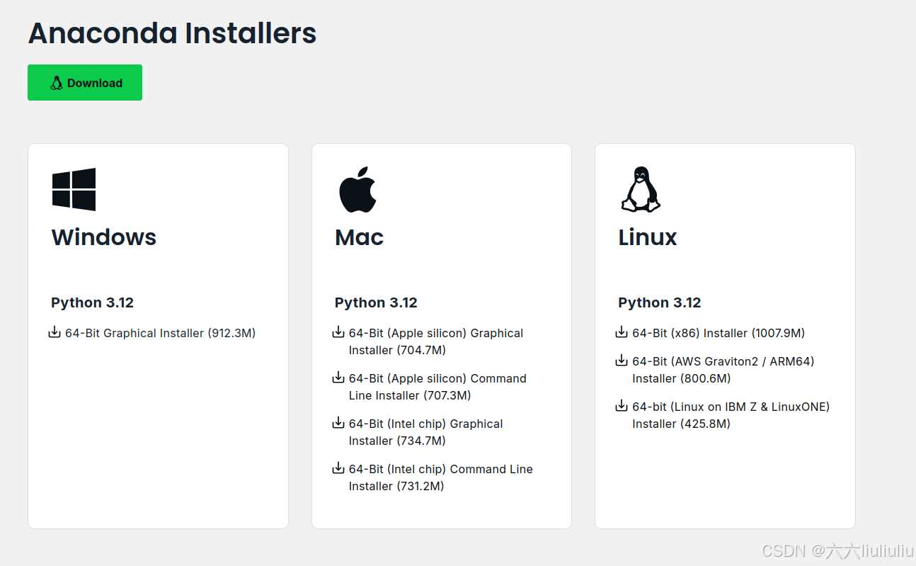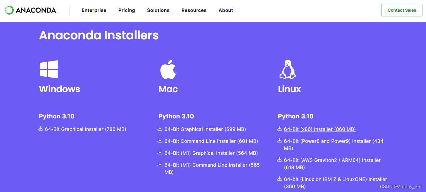 安装Anaconda之前需要先下载安装包,这里提供两种下载方式:网页手动下载、wget命令下载。两种方式均可,我自己使用的是wget命令行下载。因为wget命令非常稳定。