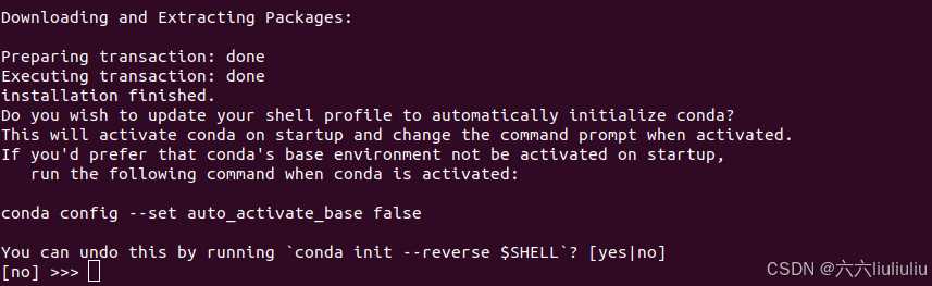 安装程序询问是否要更新你的 Shell 配置文件以自动初始化 Conda,如果你希望每次打开终端时自动激活 Conda 的 base 环境,可以选择 yes。当然你选择了yes之后想修改也可以通过以下命令就行修改: