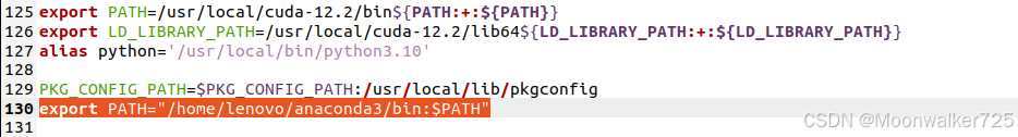 打开.bashrc文件,加入安装路径:export PATH="/home/lenovo/anaconda3/bin:$PATH"