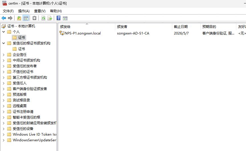 通过微软的NPS角色实现一个Radius服务器,身份验证和证书使用微软ADCS、ADDS。