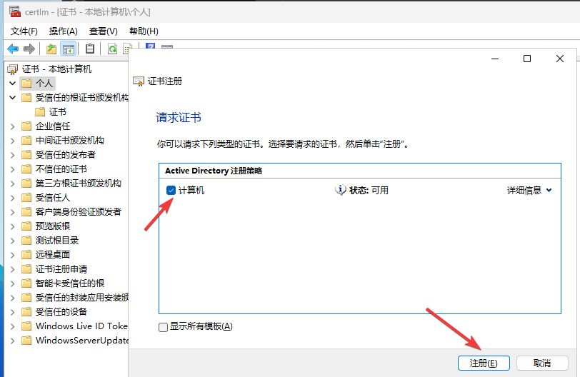 勾选计算机模板,点击注册。(注意模板默认只有一年有效期,可新建模板进行修改)