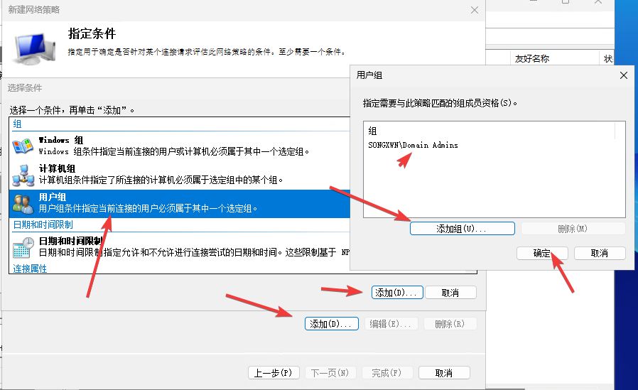 添加条件 - 指定为用户组(域控安全组)- 添加指定组