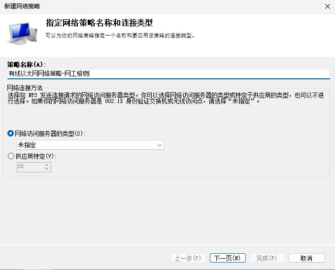创建网络策略 - 802.1x 有线以太网