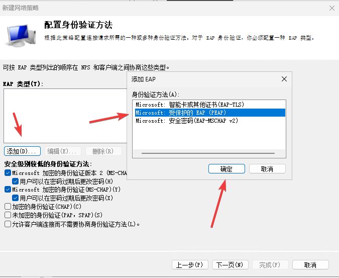 添加EAP类型 - 选择 EAP (PEAP)