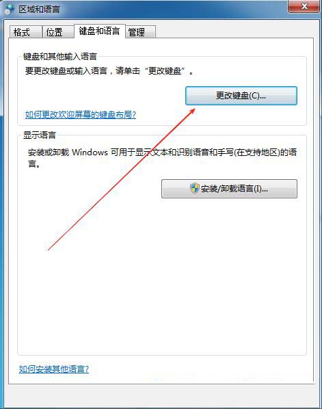 2、接着,在打开的界面中,找到并点击进入其中的“更改键盘或其他输入法”选项。