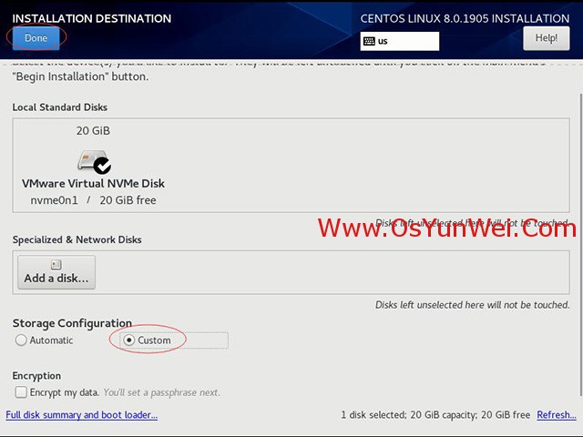 选择Storage Configuration存储配置,Custom自定义,点左上角的“完成Done”,进入下面的界面