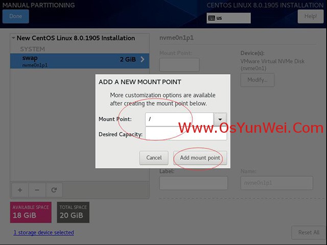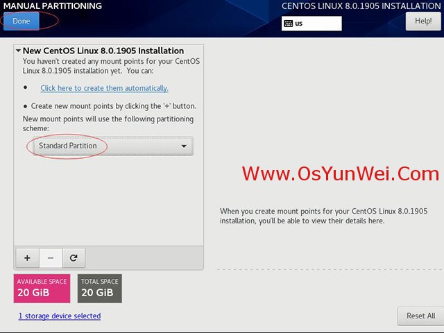 新挂载点使用以下分区方案:标准Standard Partition