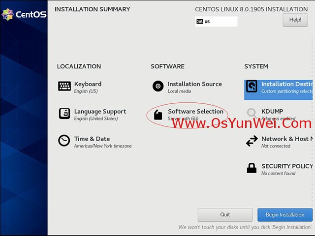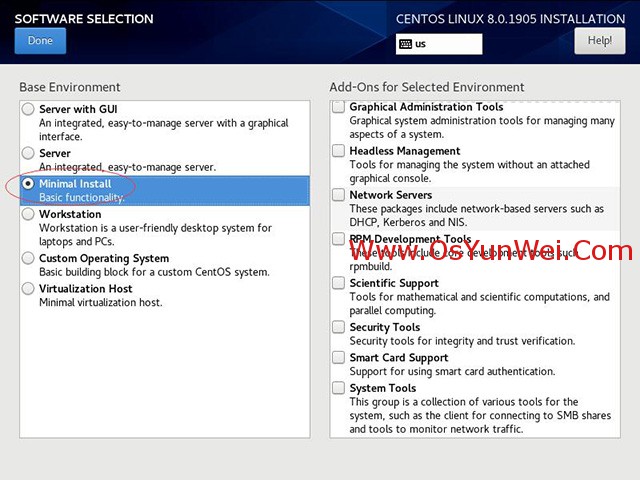 截止目前CentOS 8.x最新版本为CentOS 8.0.1905,下面介绍CentOS 8.0.1905的具体安装配置过程