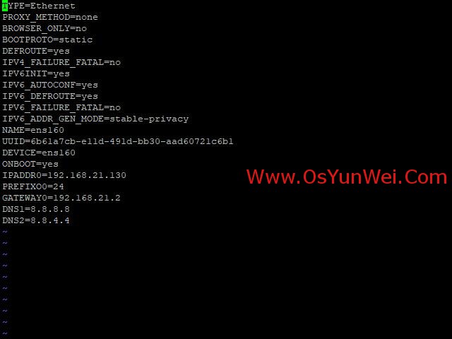 vi ifcfg-ens160 #编辑配置文件,添加修改以下内容