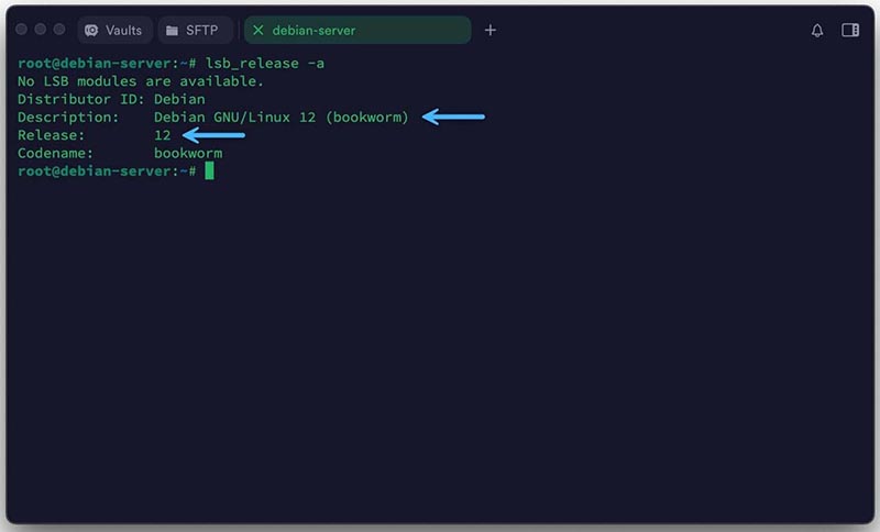 lsb_release命令是 Linux 系统用来查看发行版信息的「百事通」,它能够帮助你轻松获取 Debian 系统的详细版本信息: