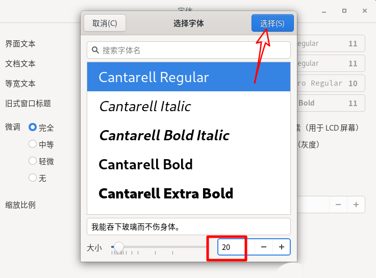 5、用户也可以在编辑框直接输入字体值,之后点【选择】退出设置。