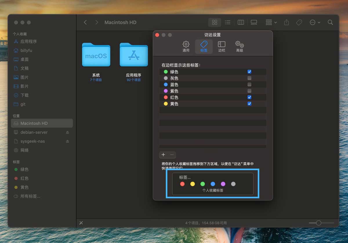 具体的「标签项」所对应的「数字」编号,你可以在「访达」>「设置」>「标签」中的「个人收藏标签」中进行排序(从左到右)。