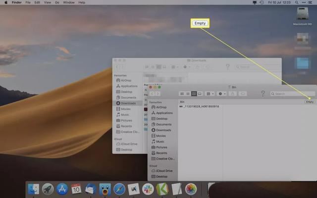 5、通过单击废纸篓并选择“清空”来清空废纸篓。