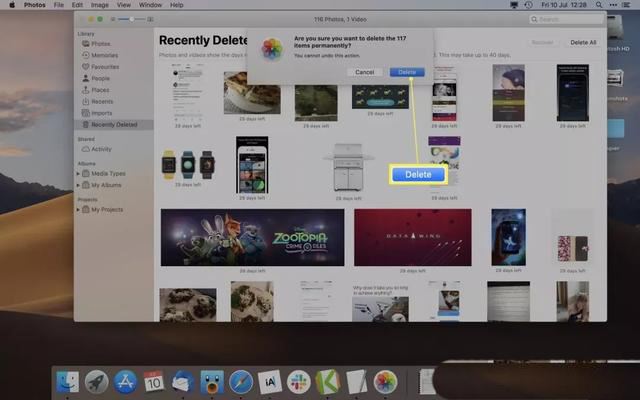 从Mac中删除照片的另一种方法是使用照片应用程序。如果你特别想删除照片,而不是在Mac的硬盘上搜索,这通常是一种更直观的方法。下面是如何删除个人照片以及如何在Mac上删除多张照片,所有这些都通过照片应用程序完成。