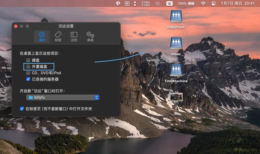 在 macOS 桌面上隐藏外置磁盘前