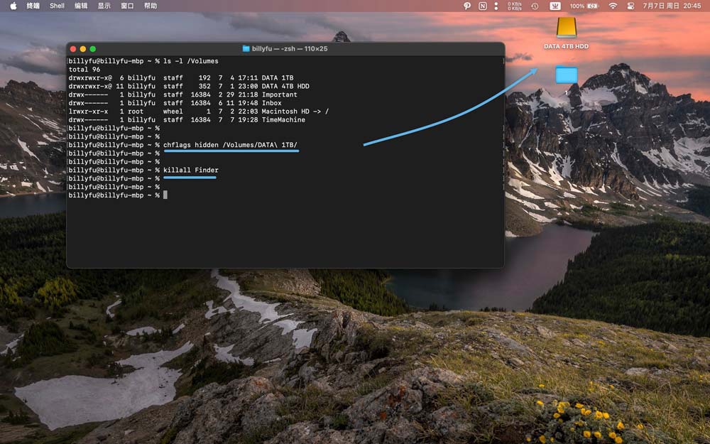 方法 2:通过终端命令隐藏 Mac 桌面外接硬盘