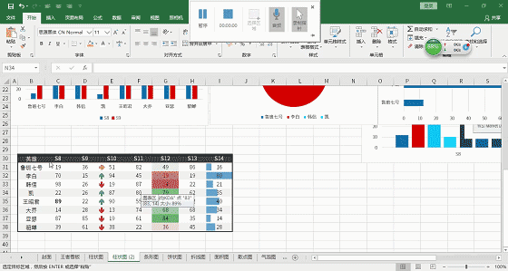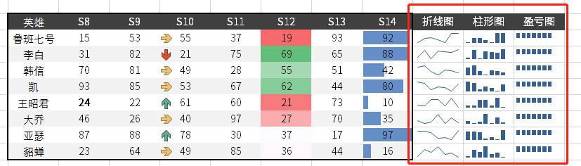 迷你图有柱形图、盈亏图、折线图这三种效果,跟原来的迷你图一样,选择后迷你图默认插在数据的右边列。所以注意不要覆盖原有数据。