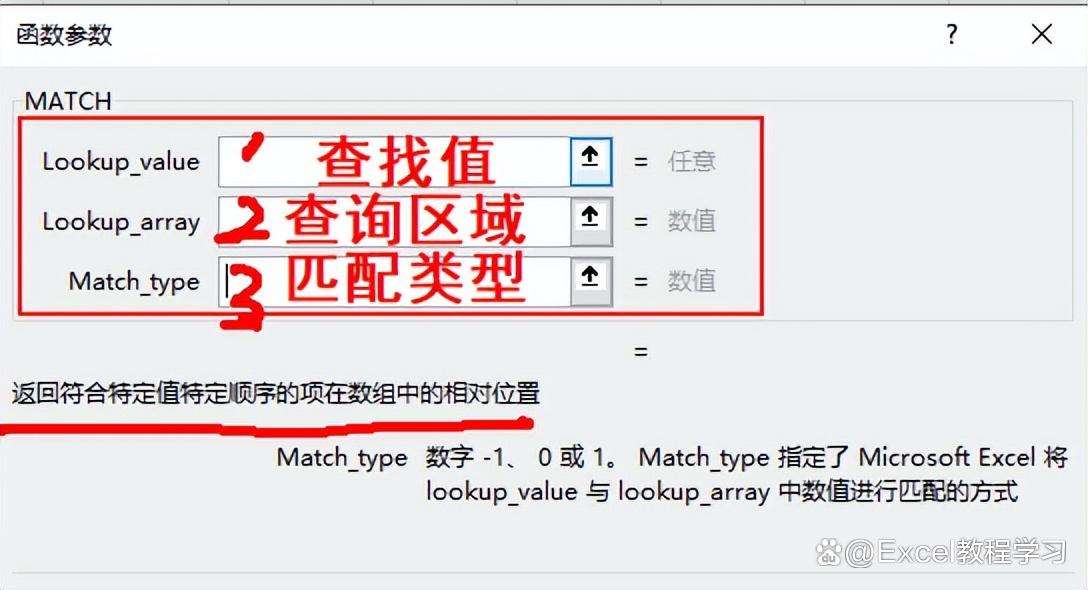 它包含3个参数,第1参数为查找值,第2参数为查询区域,第3参数是匹配类型。