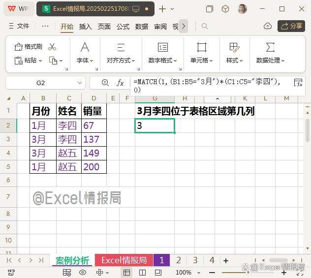 比如我们想要查找月份“3月”的姓名“李四”位于所选表格区域B1:D5的第几行。