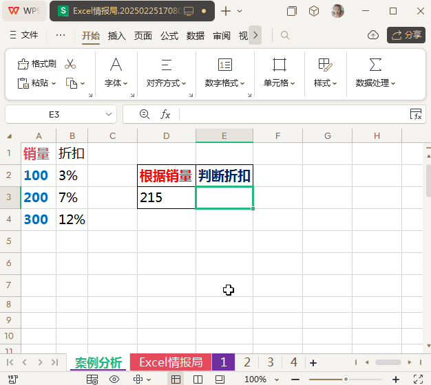 比如我们有一个销量区域对照表:销量小于100,没有折扣;销量大于等于100小于200,折扣为3%;销量大于等于200小于300,折扣为7%;销量大于等于300,折扣为12%。