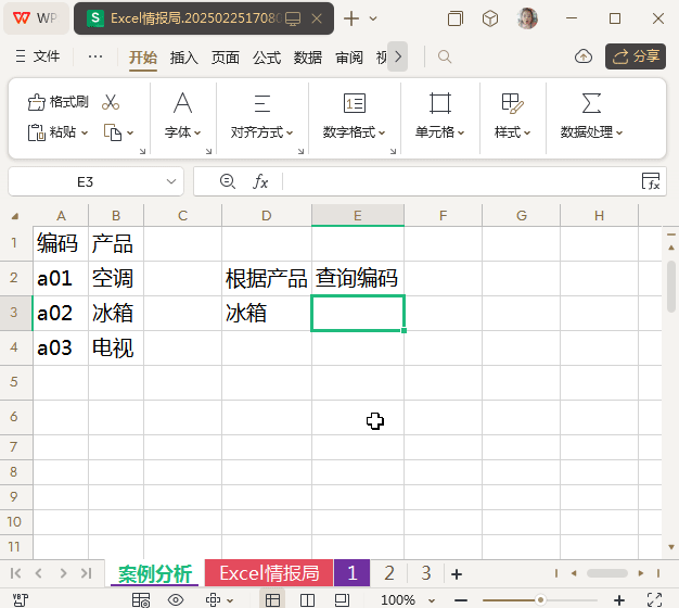 我们想要根据“产品”从右向左查询“编码”。