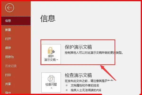 3. 然后点击右侧中的“保护演示文稿”选项。