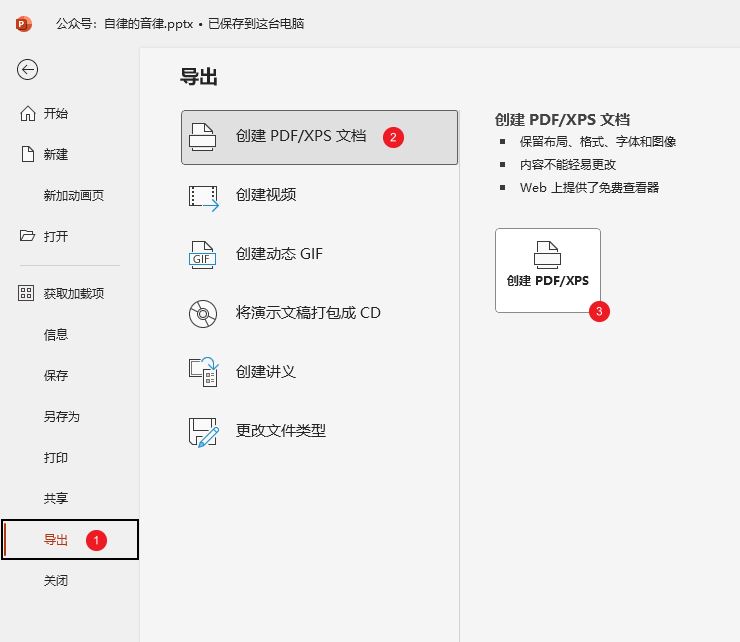 只需要点击“文件”选项卡,点击导出并选择创建 PDF 文档即可。
