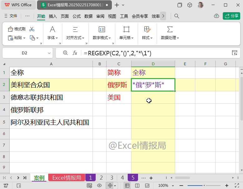 我们由REGEXP函数默认的“提取”模式,更改为“替换”模式,即设置第3参数为“2”(替换模式)。