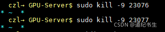 PID为32076及32077的僵尸进程占用了大量GPU资源,通过sudo kill -9 XXX 指令杀掉进程。