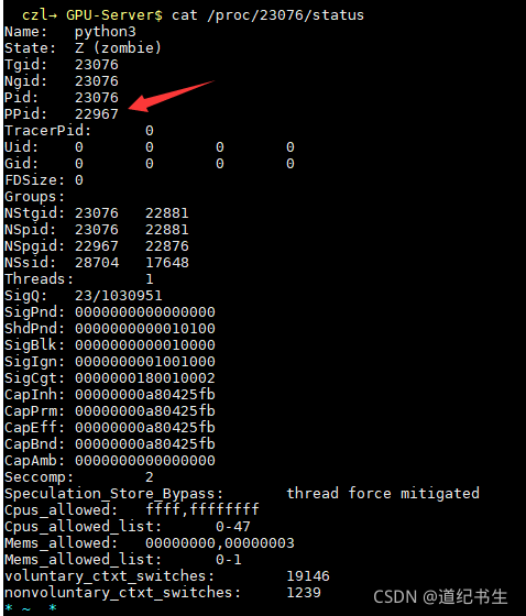 这时候可以看到显示了一个PPID,这个就是它的父进程的PID,将父进程杀了就好了。