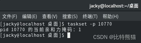 记住当前的进程PID,然后使用taskset -c -p 13265 命令查看当前进程的CPU亲和力。13265是当前进程的PID。