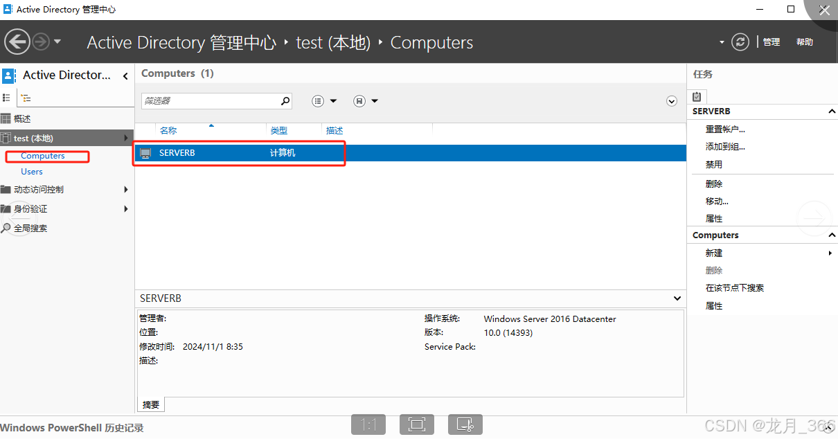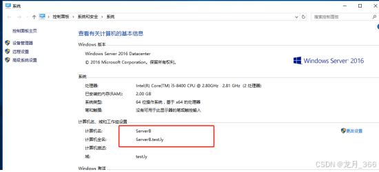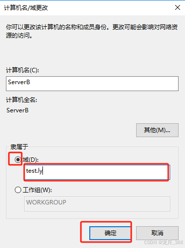 二、配置ServerB加入ServerA的AD域(test.ly)