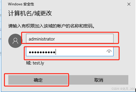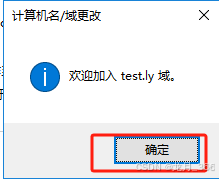 5、弹出一下界面,表示加入test.ly域成功,然后点击“确认”;