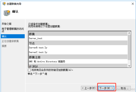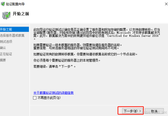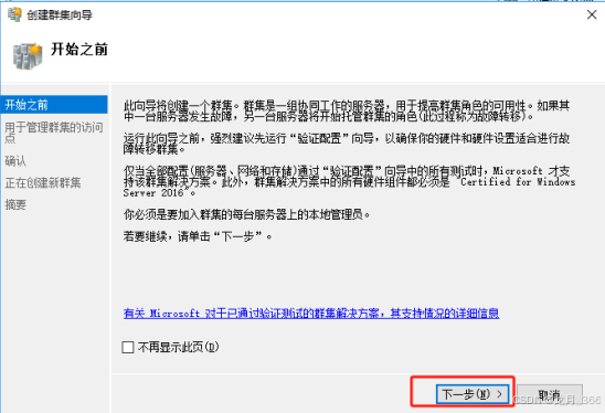 8、进入“创建群集向导”,点击“下一步”;
