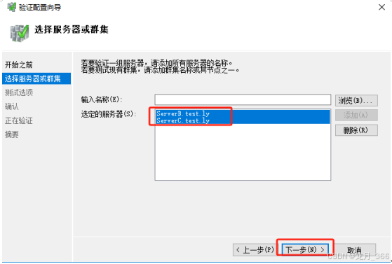 4、点击添加后,会出现对应的服务器,选中所有服务器,然后点击“下一步”;