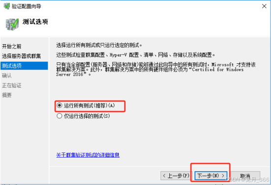 5、在“测试选项”,选择“运行所有测试(推测)”,然后点击“下一步”;