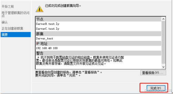 11、等待群集创建完后,在“摘要”上,点击“完成”;