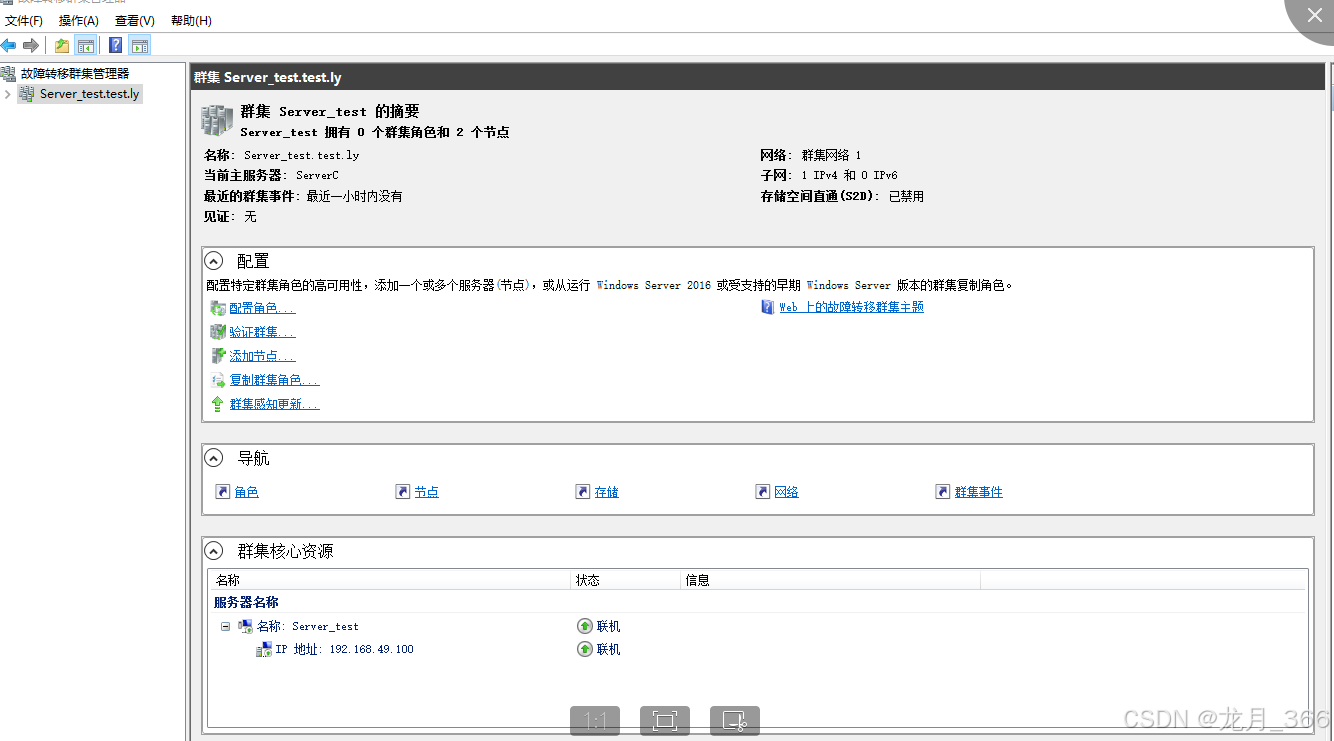 | ServerC | Window Server 2016 | 192.168.49.132 | 集群成员2 |