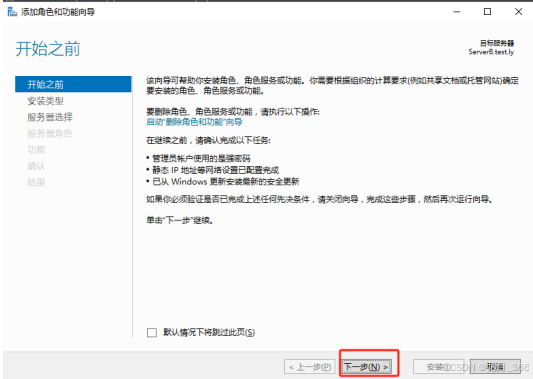 2、在“添加角色和功能先向导”上,点击“下一步”;