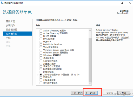 5、在“服务器角色”中,不错任何选择,直接点击“下一步”;