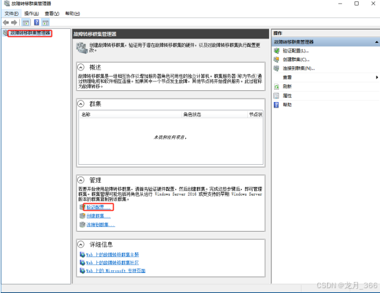 1、打开“故障转移群集管理器”,点击下方的“验证配置”;